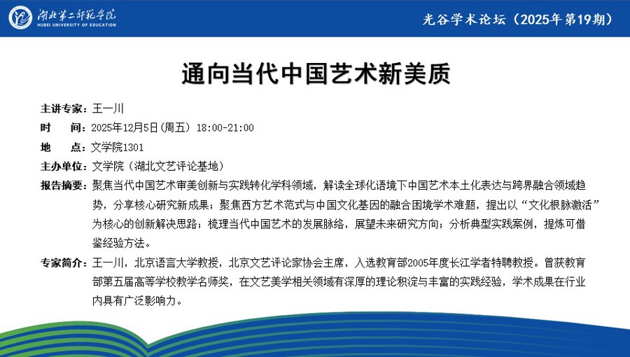 【光谷学术论坛预告】通向当代中国艺术新美质