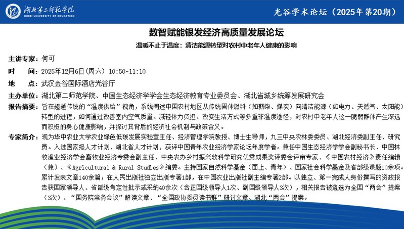 【光谷学术论坛预告】温暖不止于温度:清洁能源转型对农村中老年人健康的影响