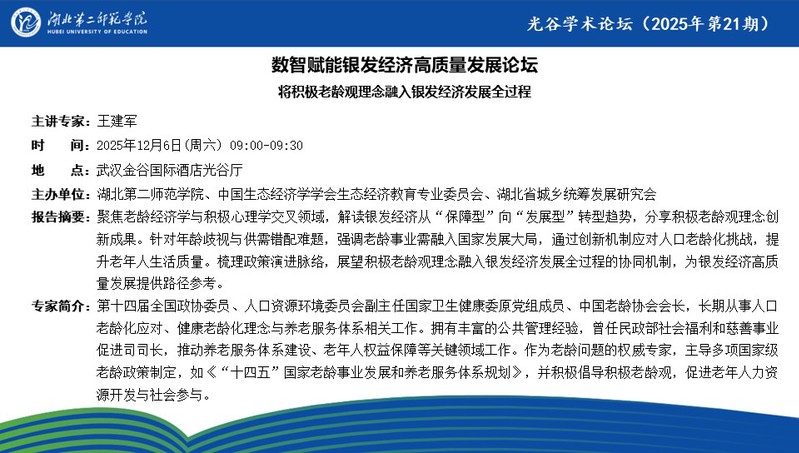 【光谷学术论坛预告】将积极老龄观理念融入银发经济发展全过程