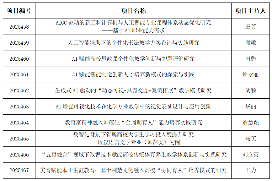 本网讯(通讯员 陈曦)近日,湖北省教育厅发文公布2025年湖北本科高校省级教学改革研究项目立项名单,pp电子《AIGC驱动的新工科计算机与人工智能专业课程体系动态优化研究——基于AI职业能力需求》等10个项目获批立项。