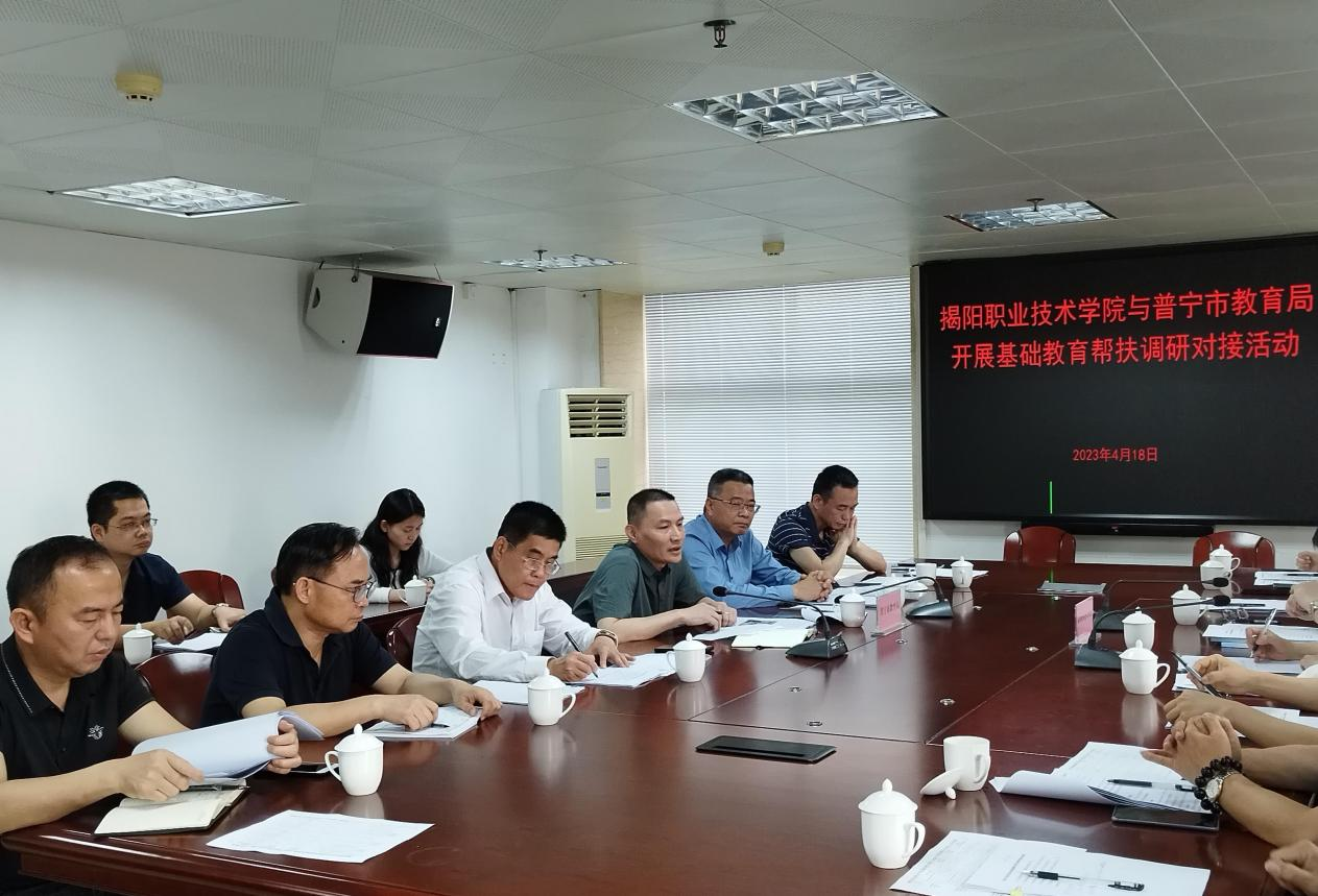 为促进365官网与普宁市教育局有序、高效、精准落实2023年对口帮扶工作,4月18日,学校党委委员、副院长刘瑞叶带领教务处、学生工作处、科技与设备处、师范教育系、信息工程系、继续教育部负责人赴普宁市教育局开展基础教育对口帮扶调研对接活动。