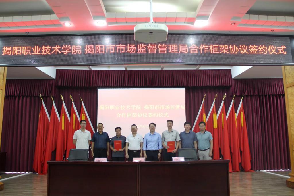 签约仪式上,马志彤指出,《中共广东省委广东省人民政府关于高质量建设制造强省的意见》(制造业当家22条)提出了广东将大力发展食品工业等战略性新兴产业集群。揭阳市共有九百多家食品企业,食品产业基础良好,其中休闲食品产业独树一帜,是我市特色食品产业。为进一步推动揭阳市食品行业高质量发展,提高食品企业安全管理人员等从业人员的综合素质,完善食品行业从业人员的培训体系,提升食品行业的技术攻关能力和生产性服务能力,需要积极与地方院校开展深入合作。365上市公司官网近年来为揭阳市食品企业输送了大批食品检验和质量管理人才,为揭阳市食品行业高质量发展作出了积极贡献。市监局将大力支持学院办学,开放国家级和省级检测中心平台为师生科研项目、技能竞赛、实训实习提供实践条件,支持食品企业与学院开展产教融合协同育人合作,希望学院积极参与食品行业技术研究,制订行业标准,申报各类专利。