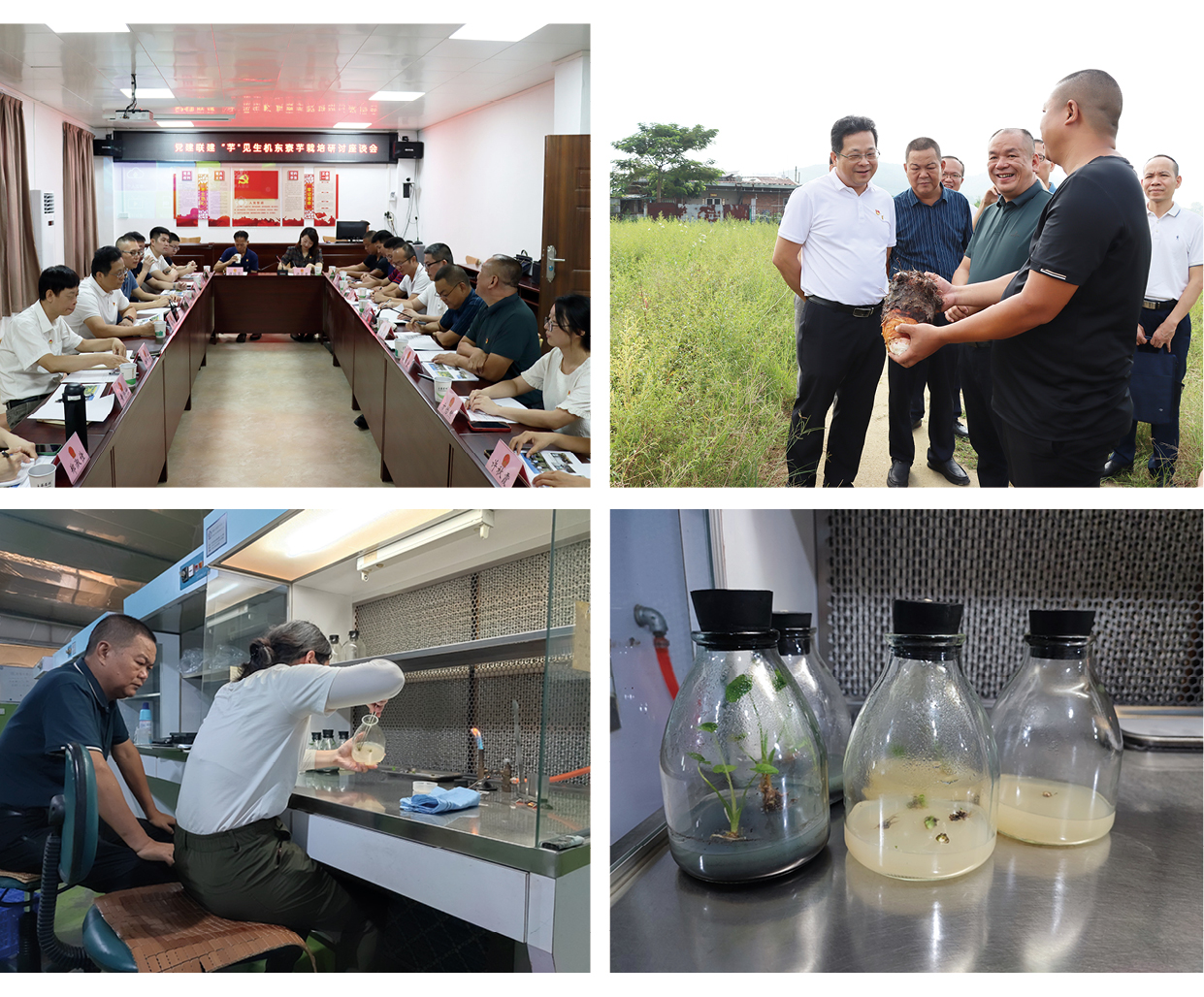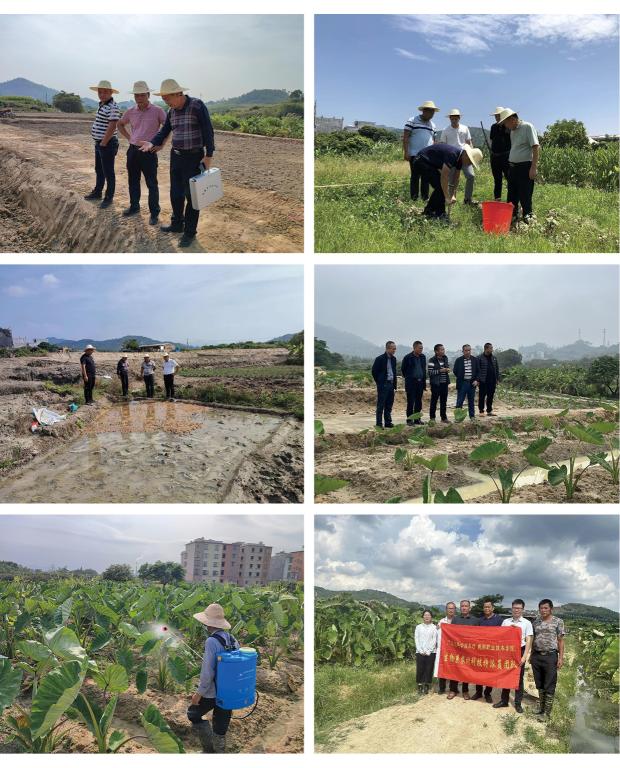 2022年7月以来,365官网科技团队充分发挥专业优势,经常深入东寮芋10亩试验田进行调查研究和指导试验工作。早在试验初期,科技团队便取病芋到广东省农科院植物保护研究所检测,明确了东寮芋病害的主要病原为细菌性软腐病和疫病,并根据芋头病样镜检结果,研究防治措施,推荐防治药剂,后续科技团队根据实际情况进一步制定了《东寮芋栽培技术方案》和《东寮芋病虫害防控技术方案》;同时科技团队在试验基地取土到广东省农科院农业资源与环境研究所检测,为试验田的科学施肥提供依据,还将种芋送到仲恺农业工程学院进行脱毒组培育苗,进行无毒芋苗的培养,为减轻东寮芋病虫害的发生和解决常规保存栽种过程中的品种退化现象,保证品种原有品质和特征特性打下基础。