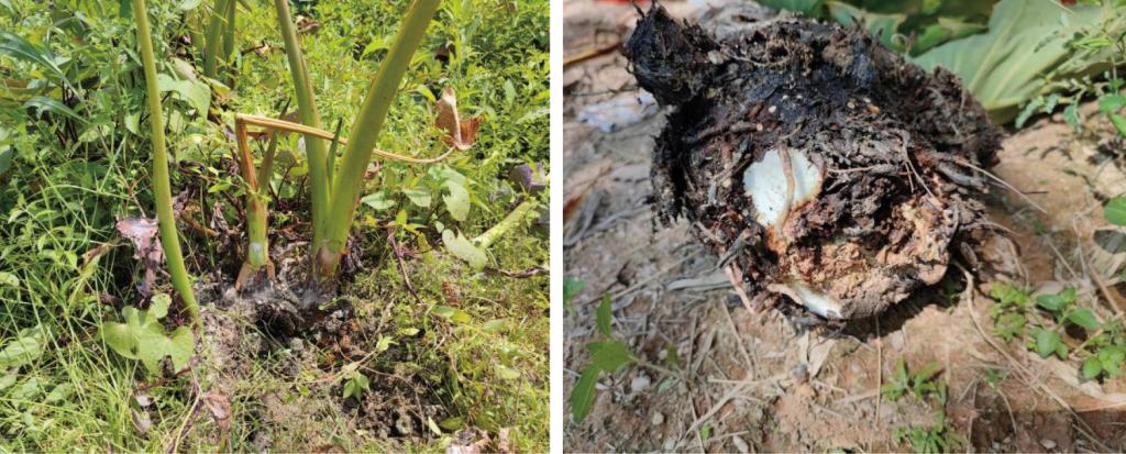 经过一年多的努力,查明了病原和土壤环境参数,制定并实施了技术方案,试验田的芋头发病率约3%,而普通芋农芋头发病率约20%。目前试验田东寮芋丰收在望,病害发生率显著低于普通村民种植,东寮芋种芋也已完成组培脱毒育苗工作,科技团队工作成效明显。
