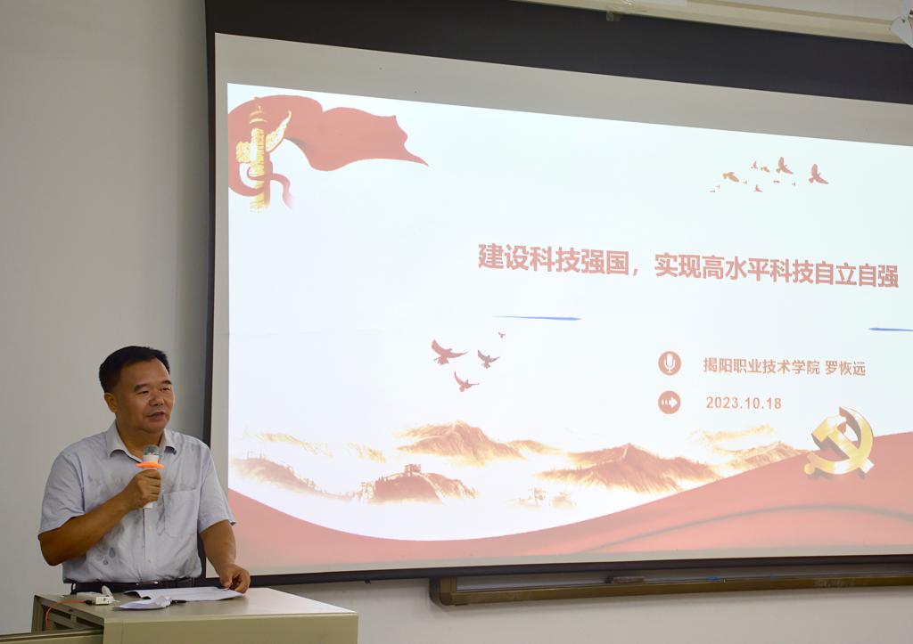 罗恢远以《建设科技强国,实现高水平科技自立自强》为题,围绕“加快建设科技强国的意义”“科技事业取得历史性成就、发生历史性变革”“怎样加快建设科技强国”三个方面进行详细讲述。他指出,面对世界百年未有之大变局,科技创新在国际竞争中的地位日趋提升。世界主要国家纷纷把科技创新作为国际战略博弈的主要战场,围绕科技制高点的竞争空前激烈,谁牵住了科技创新这个“牛鼻子”,谁走好了科技创新这步先手棋,谁就能占领先机、赢得优势。